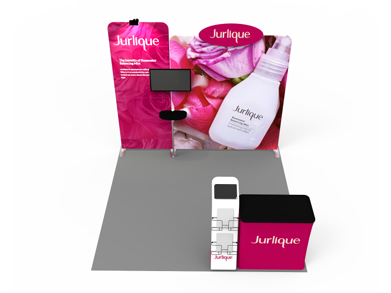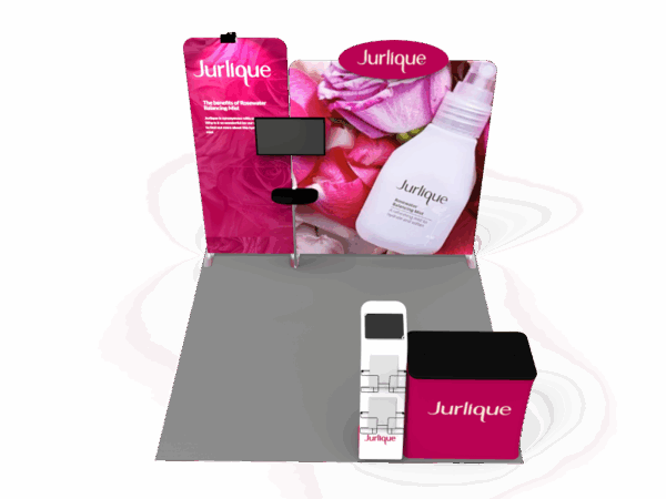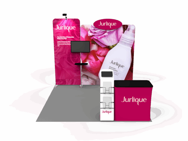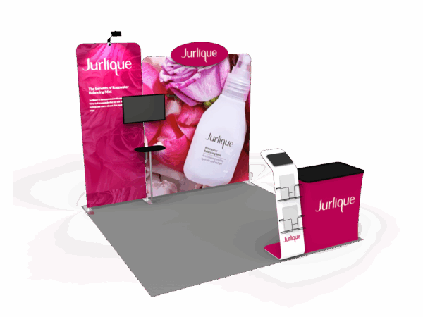 Also, it comes fully loaded with custom graphics & LED lights that all fit into a plastic hard case for transport to and from conventions & events. The plastic hard case also converts into fully functional podium, complete with a printed graphic for extra brand marketing.