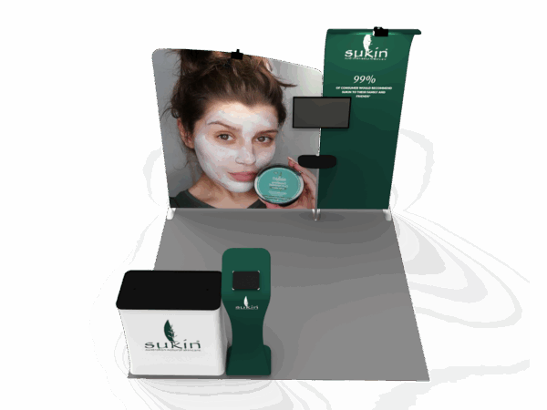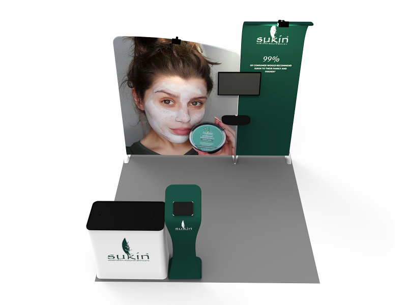 Also, it comes fully loaded with custom graphics & LED lights that all fit into a plastic hard case for transport to and from conventions & events. The plastic hard case also converts into fully functional podium, complete with a printed graphic for extra brand marketing.