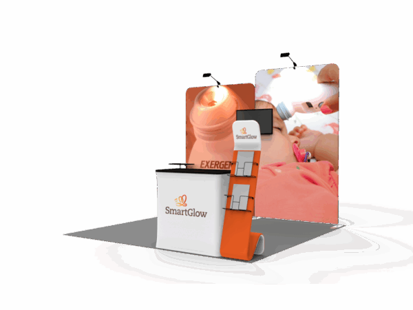 Also, it comes fully loaded with custom graphics & LED lights that all fit into a plastic hard case for transport to and from conventions & events. The plastic hard case also converts into fully functional podium, complete with a printed graphic for extra brand marketing.