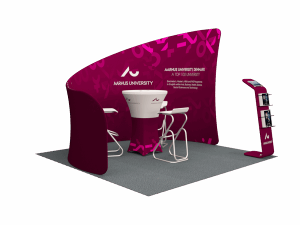 Also, it comes fully loaded with custom graphics & LED lights that all fit into a plastic hard case for transport to and from conventions & events. The plastic hard case also converts into fully functional podium, complete with a printed graphic for extra brand marketing.