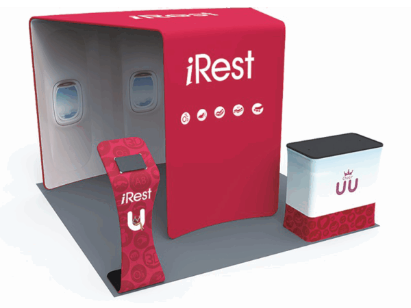 Also, it comes fully loaded with custom graphics & LED lights that all fit into a plastic hard case for transport to and from conventions & events. The plastic hard case also converts into fully functional podium, complete with a printed graphic for extra brand marketing.