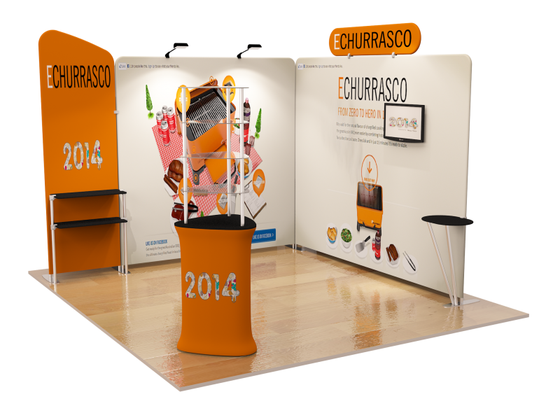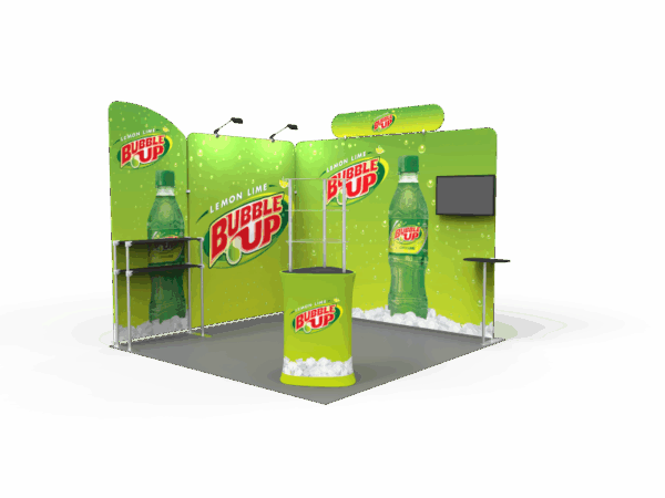Also, it comes fully loaded with custom graphics & LED lights that all fit into a plastic hard case for transport to and from conventions & events. The plastic hard case also converts into fully functional podium, complete with a printed graphic for extra brand marketing.
