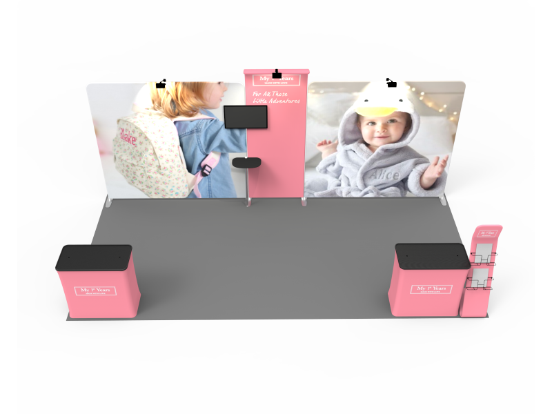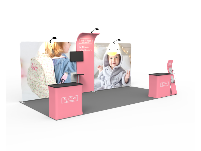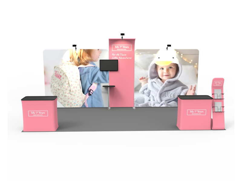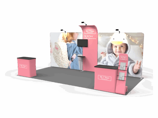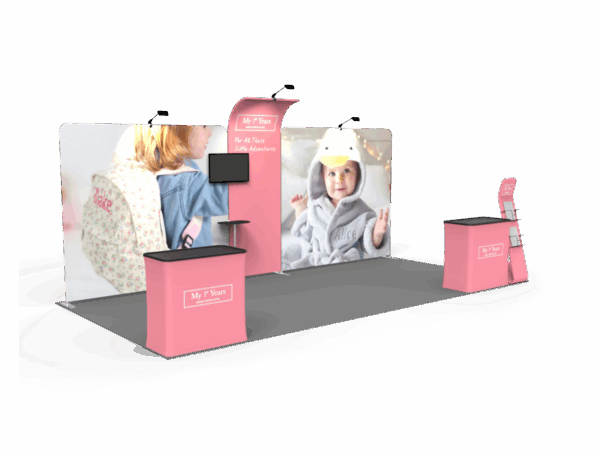 With 10×20 displays , you’ve got twice the trade show booth presence from your 10×10. Yet, our 10×20 custom exhibits allow you to use the entire booth for full impact or break your exhibit down into two 10x10s—a versatile feature for your diverse event marketing needs.