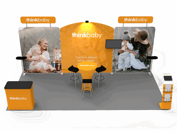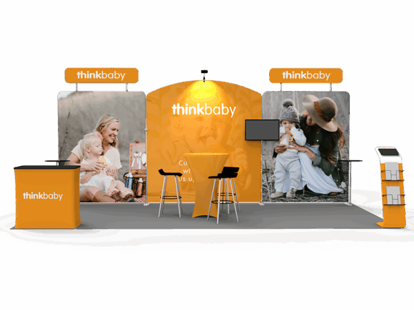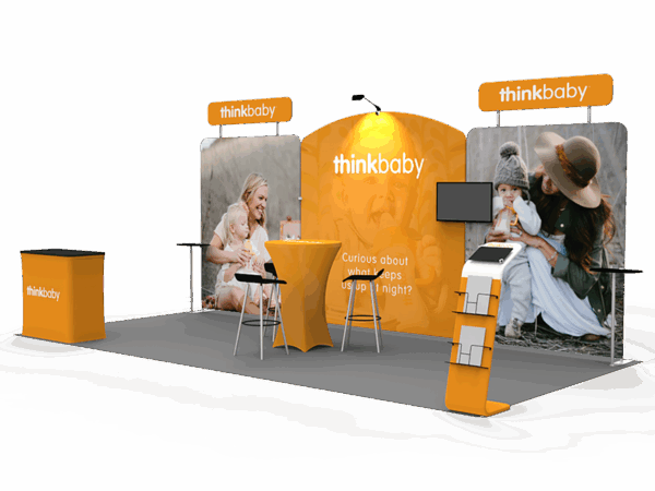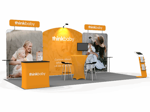 Our awesome 20ft portable tradeshow booth solution can draw attention to your brand! It allows you to fully custom your exhibit booth, just use all three panels in any configuration to form 10ft, 15ft or 20ft trade show display. Also, it comes fully loaded with custom graphics & LED lights that all fit into a plastic hard case for transport to and from conventions & events. The plastic hard case also converts into fully functional podium, complete with a printed graphic for extra brand marketing.