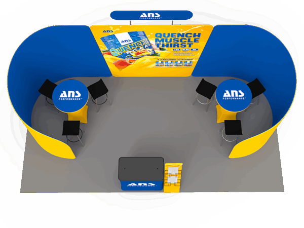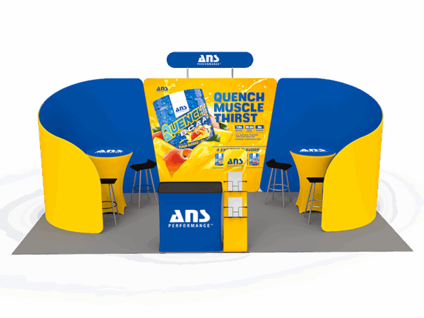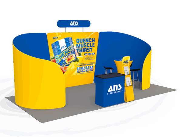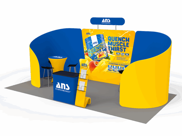 Our awesome 20ft portable tradeshow booth solution can draw attention to your brand! It allows you to fully custom your exhibit booth, just use all three panels in any configuration to form 10ft, 15ft or 20ft trade show display. Also, it comes fully loaded with custom graphics & LED lights that all fit into a plastic hard case for transport to and from conventions & events. The plastic hard case also converts into fully functional podium, complete with a printed graphic for extra brand marketing