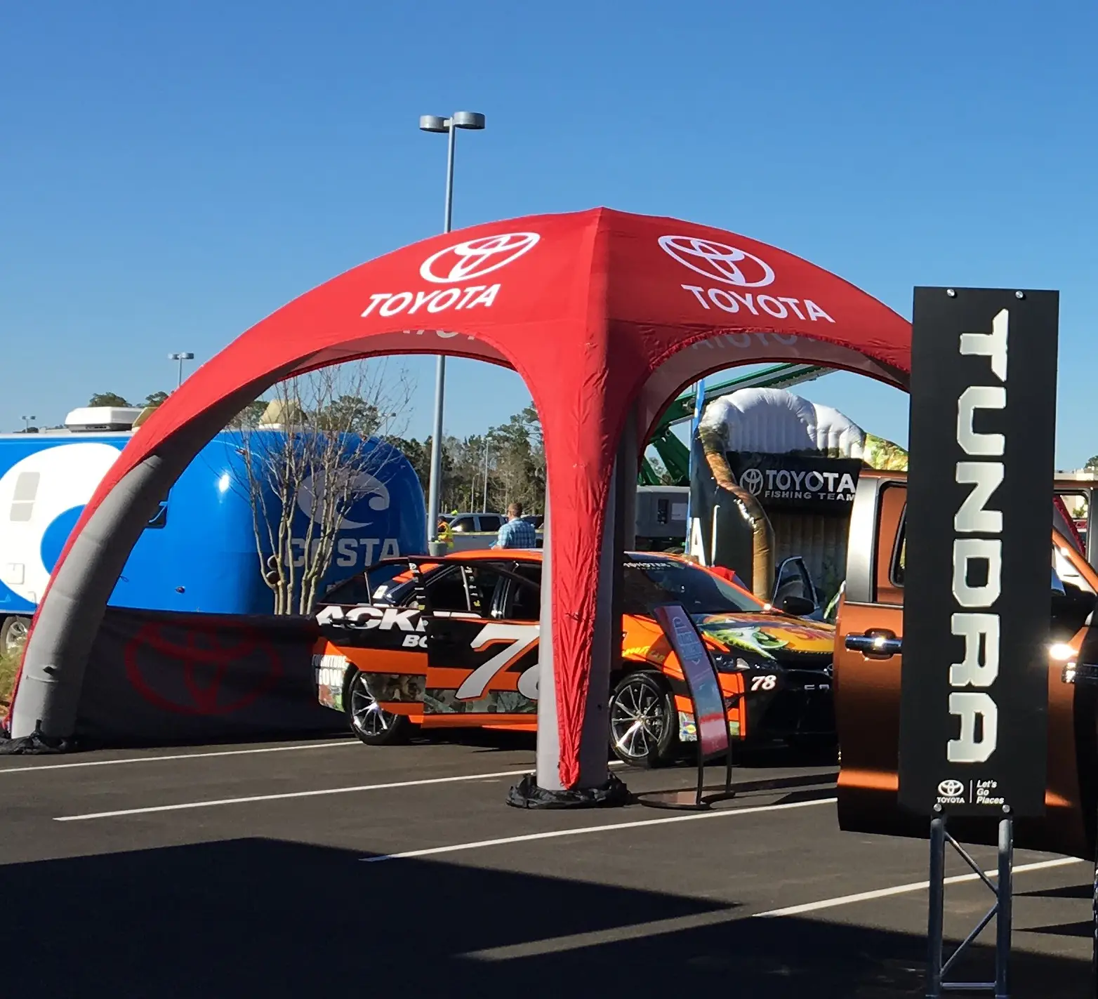 These custom printed, inflatable tents are a great way to promote your brand while providing some protection from the elements. Inflatable marketing tents are also modular, meaning you can use several units to connect with each other to create an impressive, branded base station.