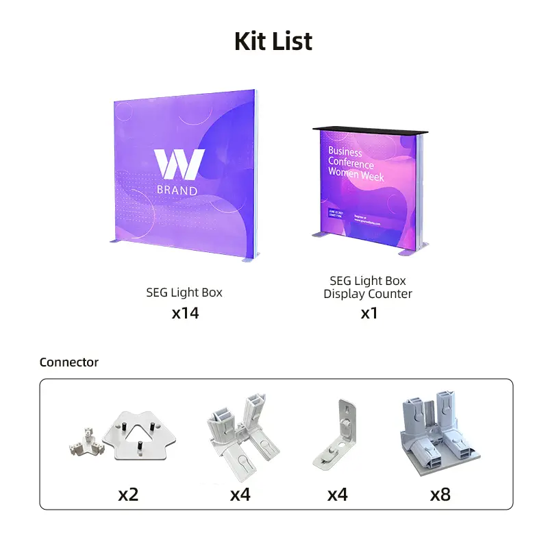 Featuring state-of-the-art Silicone Edge Graphics (SEG) technology, our kit ensures seamless, high-resolution graphic displays that seamlessly fit into sleek aluminum frames. The SEG graphics create a polished, frameless appearance, maximizing the visual impact of your brand messaging and imagery.