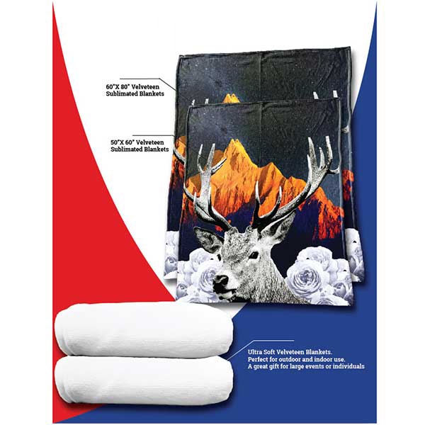Full Sublimation Super Soft Velveteen Blanket. Great for brand logos or pictures for giveaways and end of season gifts!