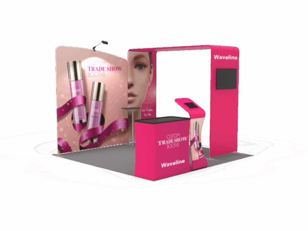 Also, it comes fully loaded with custom graphics & LED lights that all fit into a plastic hard case for transport to and from conventions & events. The plastic hard case also converts into fully functional podium, complete with a printed graphic for extra brand marketing.