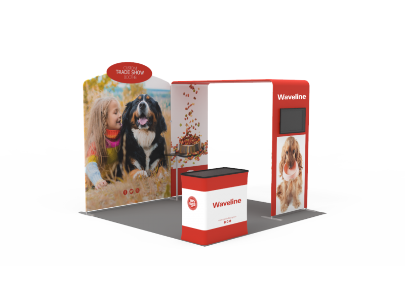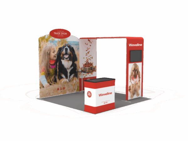 Also, it comes fully loaded with custom graphics & LED lights that all fit into a plastic hard case for transport to and from conventions & events. The plastic hard case also converts into fully functional podium, complete with a printed graphic for extra brand marketing.